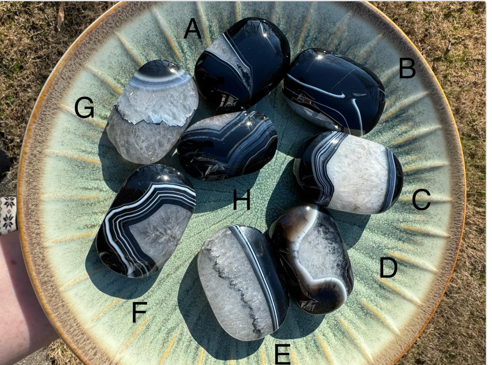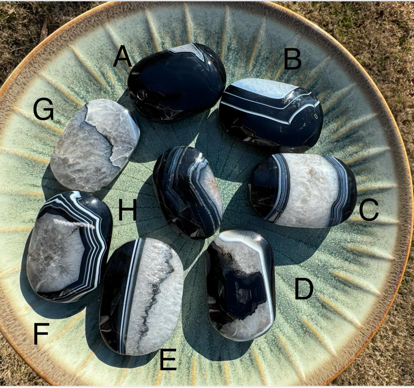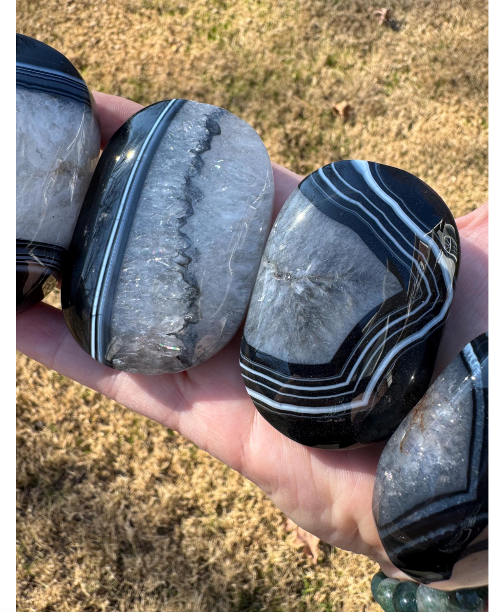 Beautiful Black Agate mixed w/ Quartz Palm Stones Free Gift Wrap