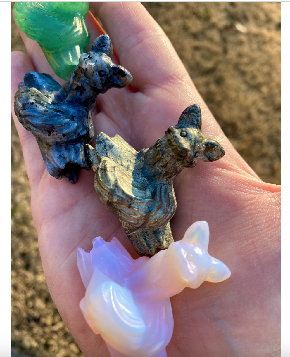 Adorable hand carved foxes sitting primly on a fallen log in a range of different types of crystals. Each measuring over 1.5” high and 1.5” long. Small enough to carry with you and great to display. Items will be carefully giftwrapped in the Moonlit Day Apothecary signature wax seal.