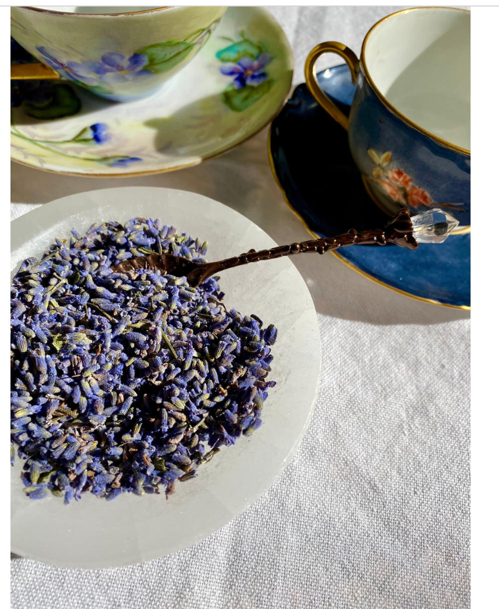 I use these little decorative metal spoons for everything: stirring hot tea, spooning incense, in offering bowls, to spoon loose tea, stirring essential oils to find the perfect scent for my candles, etc. Each is just over 4.5 inches long. They are adorable and completely food safe. Fun for fairy tea parties or as small gifts. Check back in my shop soon as I will soon be selling these spoons topped with my own natural crystals.