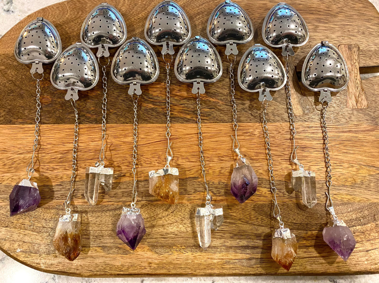 I have chosen a few gorgeous silver topped crystals to adorn these high quality heart shaped tea infusers. Food safe. Hand wash and dry. Every order from MDA will be gift wrapped with my signature wax seal at no extra charge.