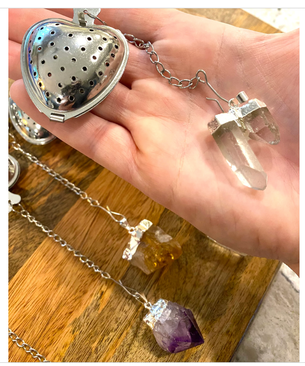 Crystal Tea Infuser Loose Leaf Tea Steeper Natural Raw Crystal Tea Ball Tea Lover Gift Present Free Gift Wrap Amethyst Citrine Silver
