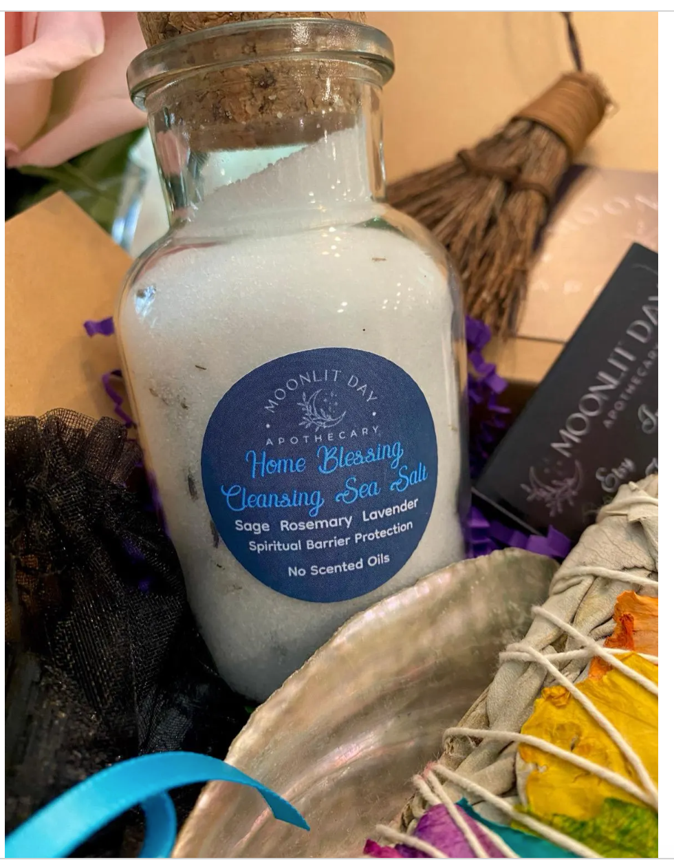 *Home Blessing Cleansing Salts. This 5oz. glass jar holds Celtic sea salt with a touch of organic sage, lavender, a