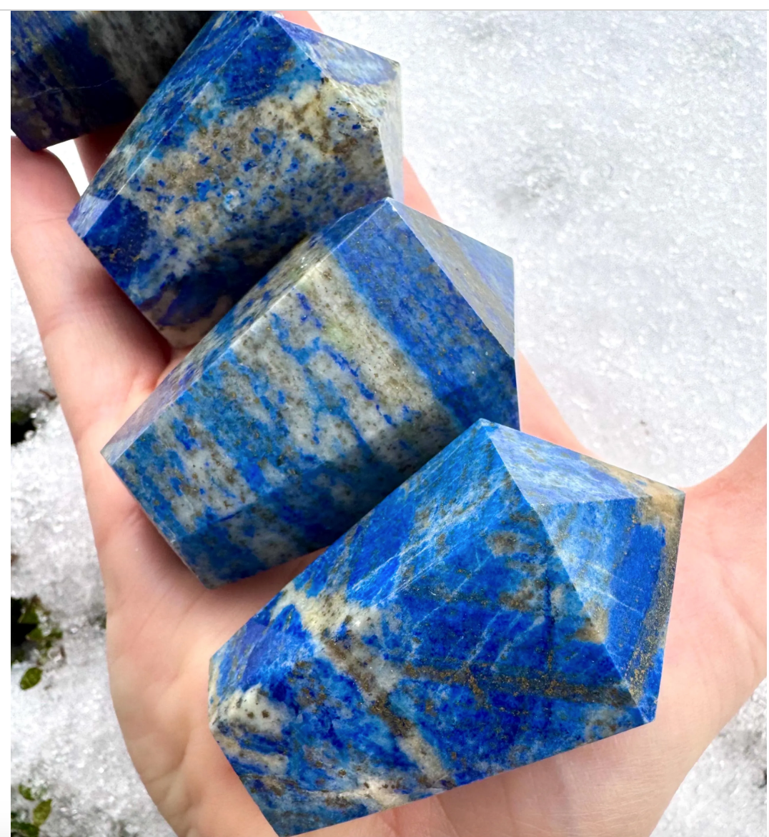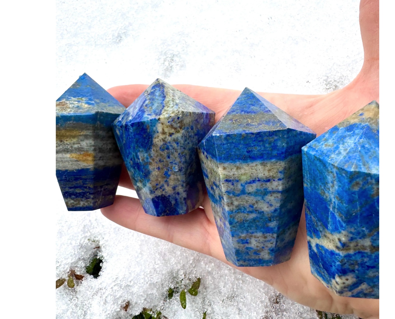 Beautifully cut blue lapis lazuli cupcake towers. Each is just under/over 2” tall. Similar in cut and color. When you order, I will pick your tower intuitively for you. Every order will be gift wrapped with my signature wax seal at no extra charge.