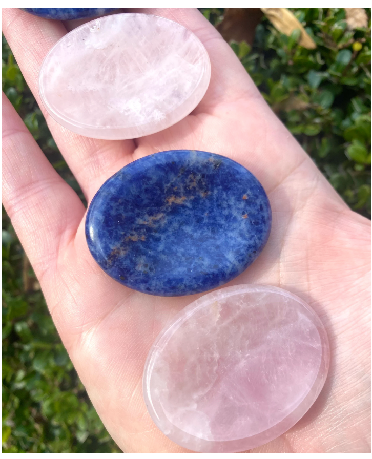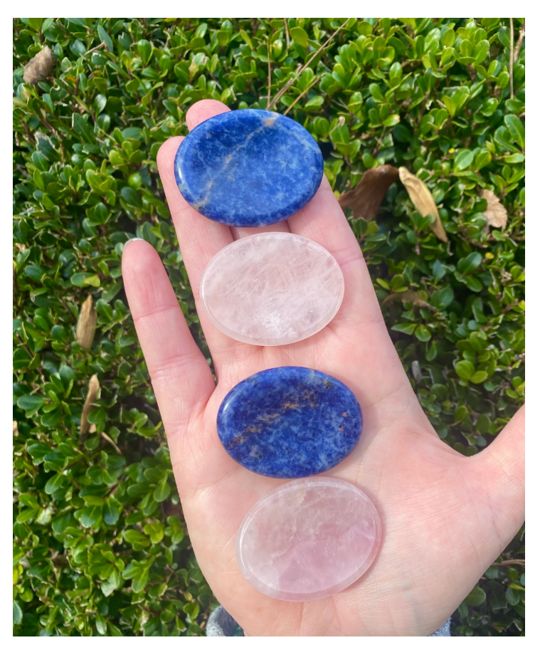 Thumb worry stones. Natural crystals. each aprox. 1.85” inches but do vary slightly. Currently available in Pink Rose Quartz. Every order from Moonlit Day Apothecary will be gift wrapped at no extra cost with my signature wax seal.