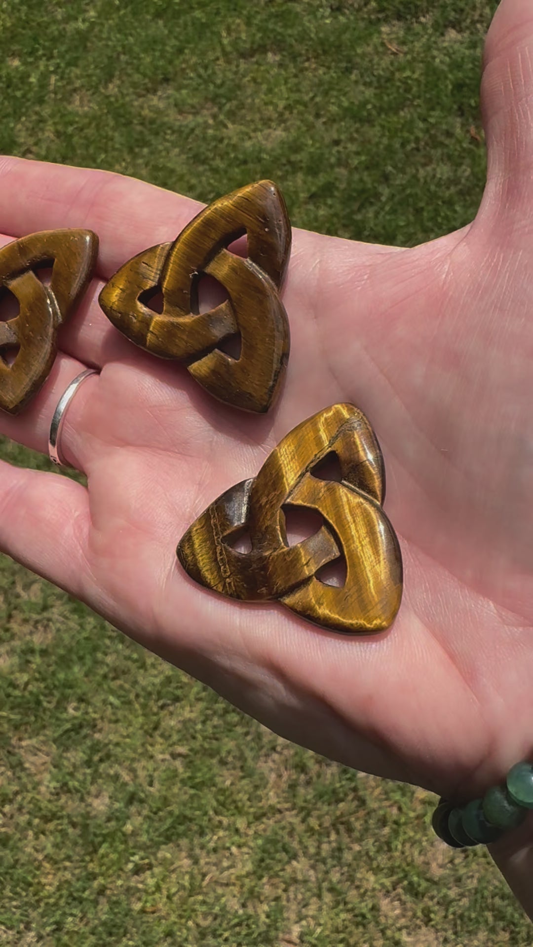 Triquetra pocket stones made of natural Tiger’s Eye