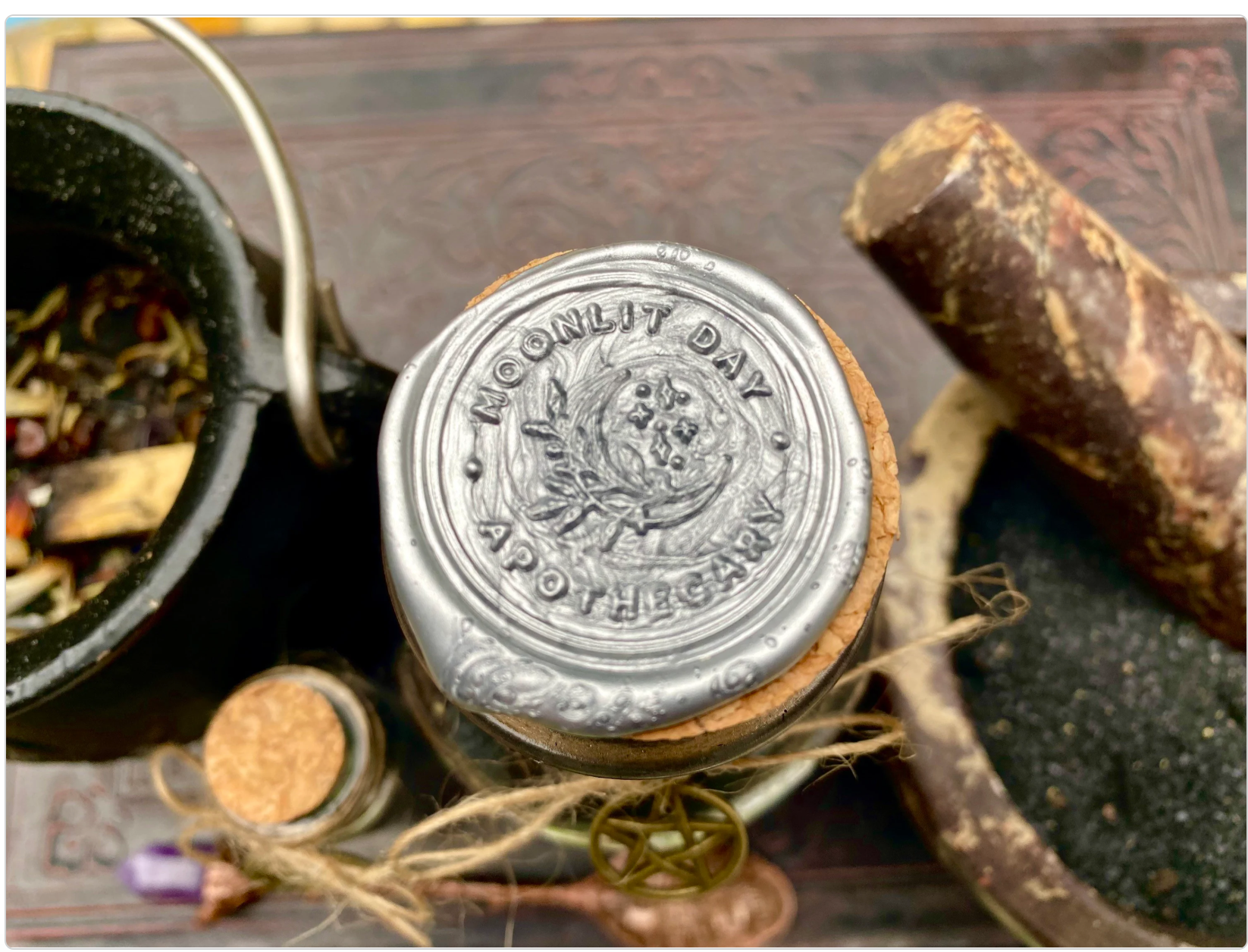 This listing is for a larger 150ml glass bottle with pentacle charm and my signature wax stamp. You can find a smaller “travel size” 15ml glass bottle with cork and pentacle charm listed under my Witch's Apothecary Herbs.*You can follow Moonlit Day Apothecary on TikTok Instagram and Facebook
