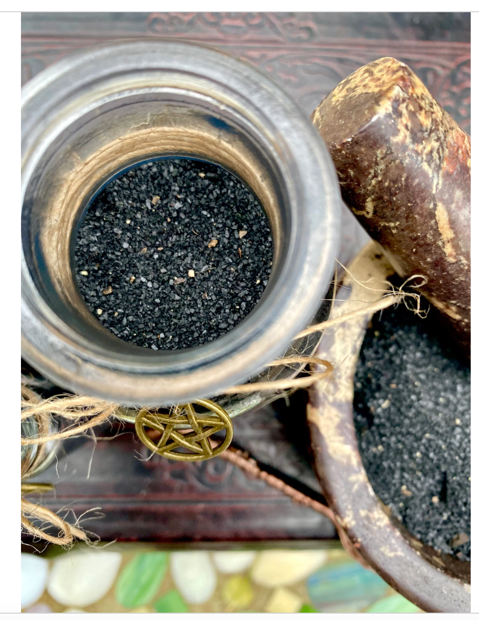 What is ritual black salt? Ritual salt, also known as Witch’s salt is made with salt along with ash, charcoal, and sometimes black pepper. It is never meant to be eaten. The easiest way to use ritual salt is to sprinkle some outside your door to ward off negative intentions from visitors. You can also add to spell jars, or place a small bag of it under your pillow or in a bowl under your bed to keep nightmares at bay. You can even sprinkle some in front of your broom before sweeping to sweep bad energy out of your home. Some witches carry a small vial or bag on them when leaving the home or traveling for protection.